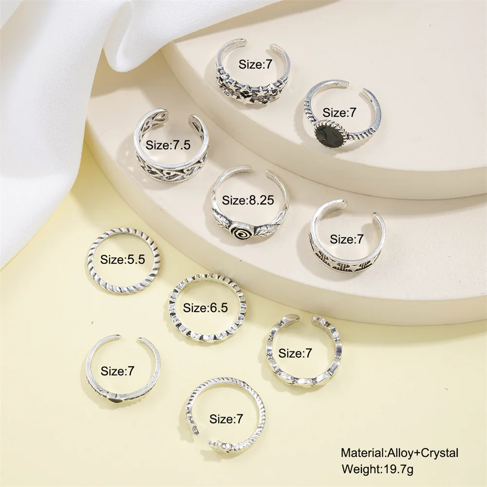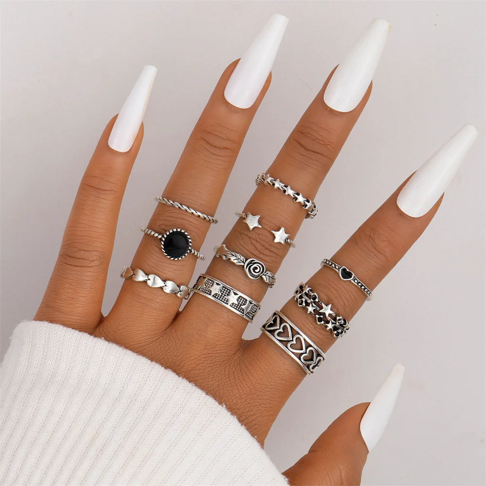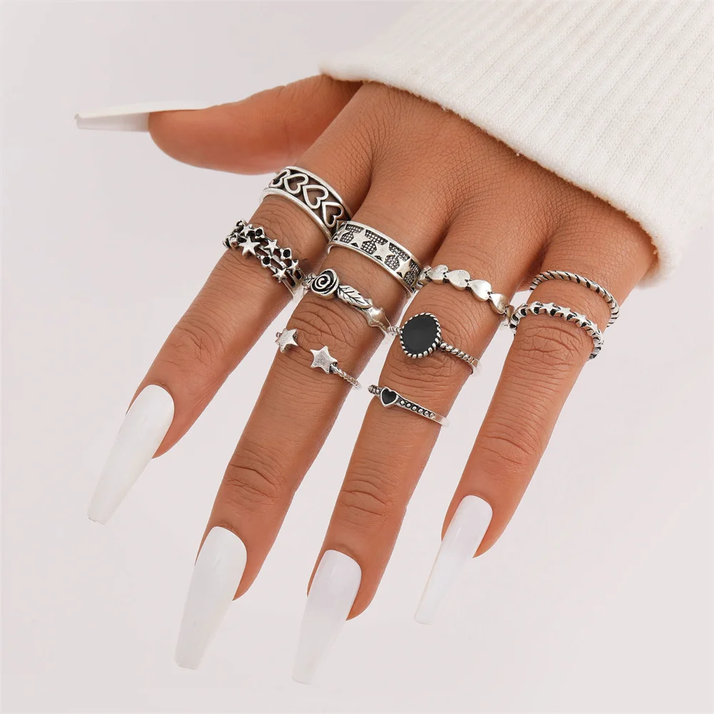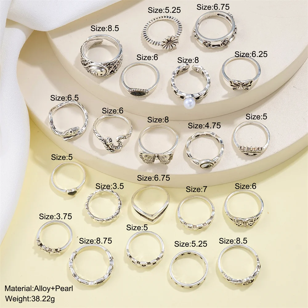 21pcs/set Punk Gothic Butterfly Snake Heart Rings Set For Women Men Vintage Silver Plated Geometric Finger Rings Party Jewelry